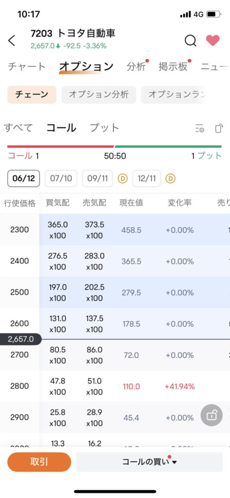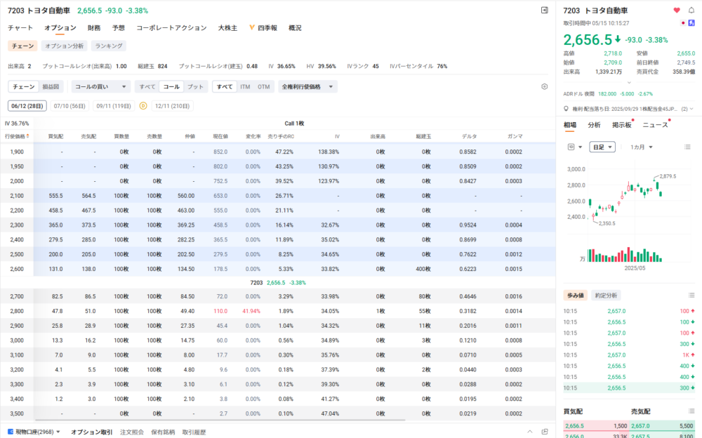 オプションチェーンの表示