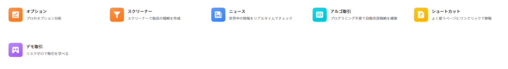 オプションチェーン、約定分析、損益分析などのツールが提供されており、取引戦略の構築や意思決定のサポートが結構手厚いです。