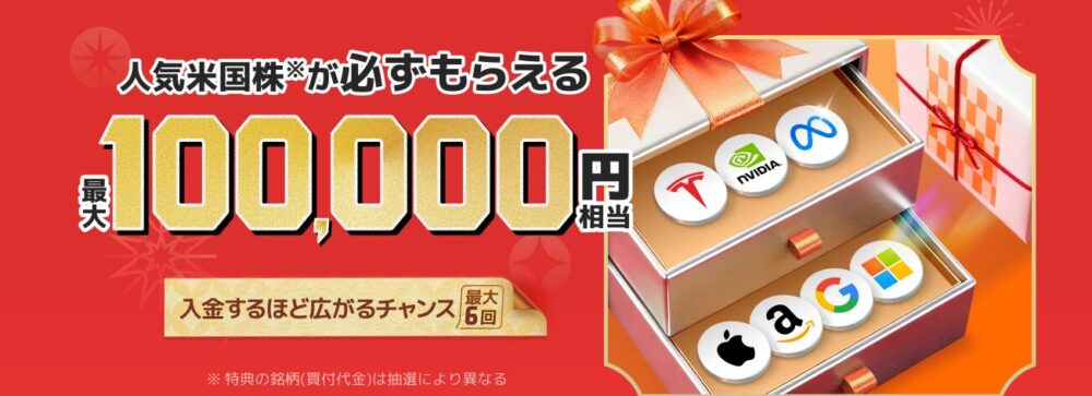 100万円以上の入金で、人気株ガチャ券が6枚もらえます。