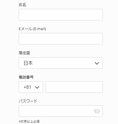 以下の項目だけ入力すればすぐにモ口座を開設できます。